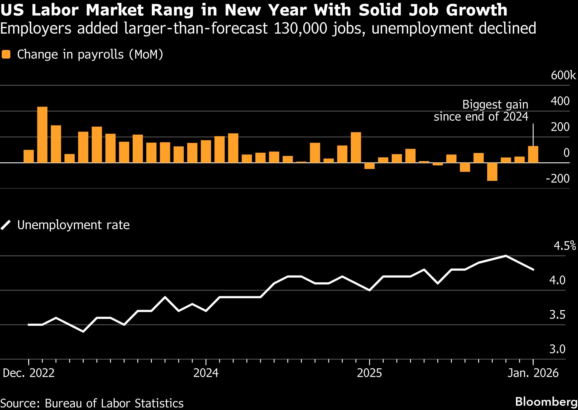 “Jangan terkecoh oleh revisi,” kata Mike Reid dari RBC Capital Markets. “Laporan ketenagakerjaan Januari menunjukkan perbaikan berkelanjutan di pasar tenaga kerja AS. Ke depan, data ini memperkuat pandangan kami bahwa The Fed akan memasuki periode jeda panjang pada 2026.”