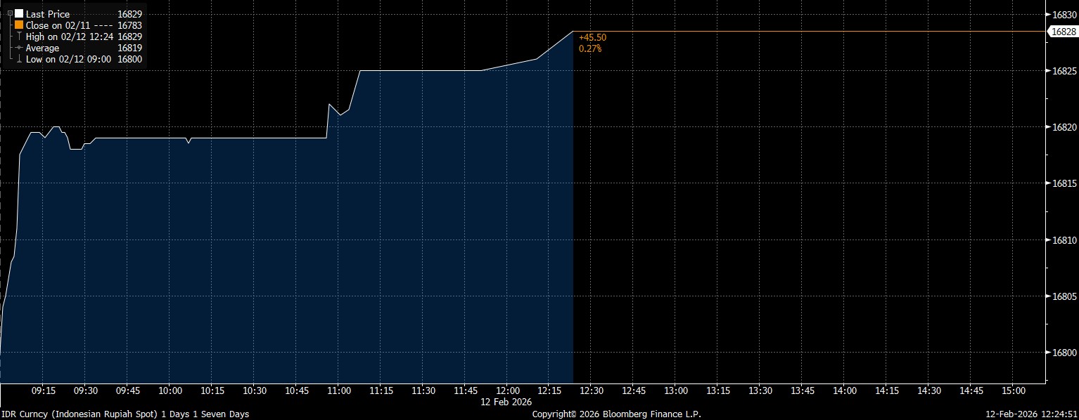 Mengacu data Bloomberg, rupiah melemah 0,27% di pasar spot menyentuh Rp16.829/US$. Pada pembukaan perdagangan pagi tadi, rupiah padahal sempat dibuka menguat 0,04% pada level Rp16.777/US$.
