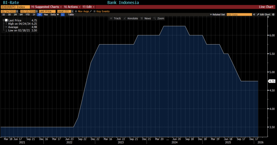 Berdasarkan konsensus ekonom yang dihimpun Bloomberg, BI diproyeksikan akan tetap menahan suku bunga acuan di 4,75%.