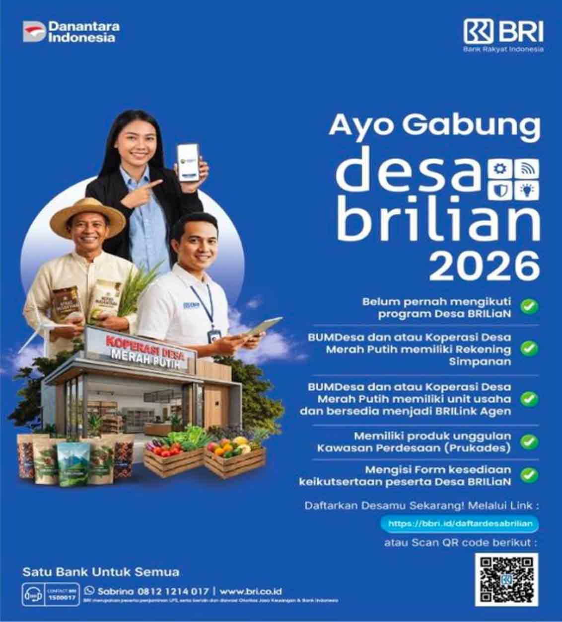 Program Desa BRILiaN 2026 terbuka bagi desa yang belum pernah mengikuti program ini sebelumnya. Selain itu, desa peserta harus memiliki BUMDesa atau Koperasi Desa Merah Putih yang telah memiliki Rekening Simpanan BRI dan unit usaha aktif yang produktif.