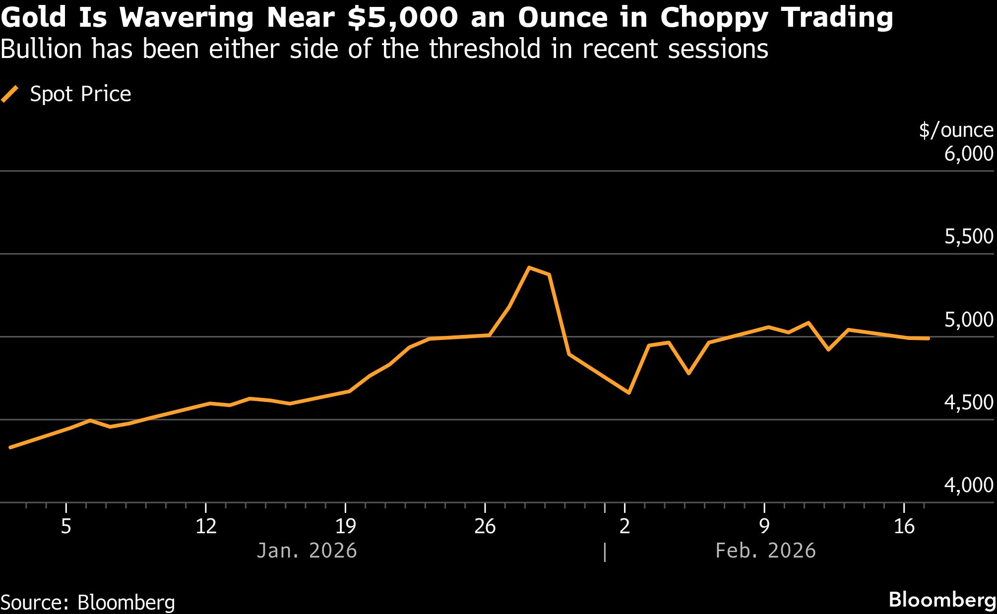 Namun, dalam jangka pendek, risiko penurunan akan meningkat semakin lama harga emas batangan tetap di bawah US$5.000, karena hal ini “akan semakin menghalangi trader bullish mengingat volatilitas baru-baru ini,” kata Fawad Razaqzada, seorang analis di City Index, dalam sebuah catatan.