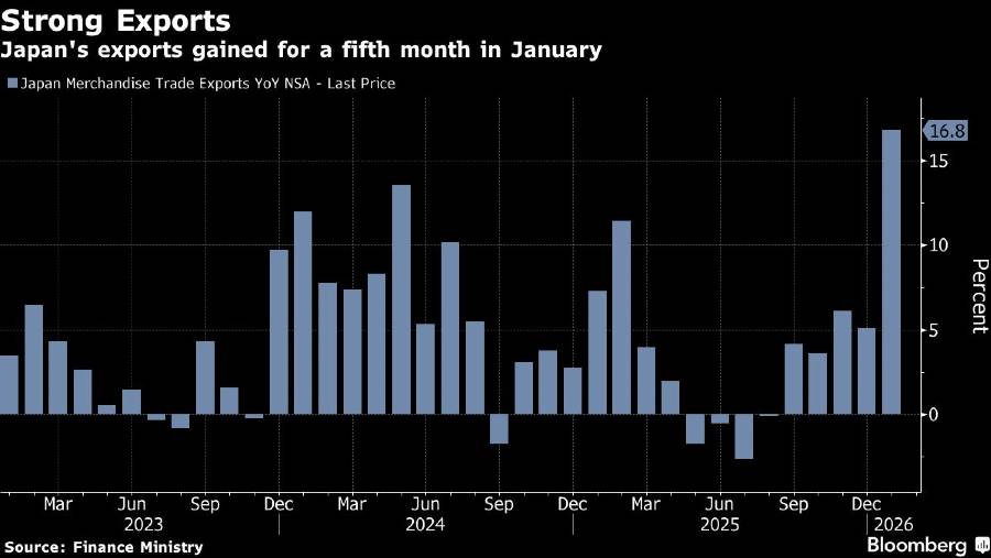 Menurut laporan Kementerian Keuangan pada Rabu (18/2/2026), nilai ekspor secara keseluruhan naik 16,8% pada Januari dibandingkan dengan periode yang sama tahun lalu, kenaikan paling tajam sejak November 2022.
