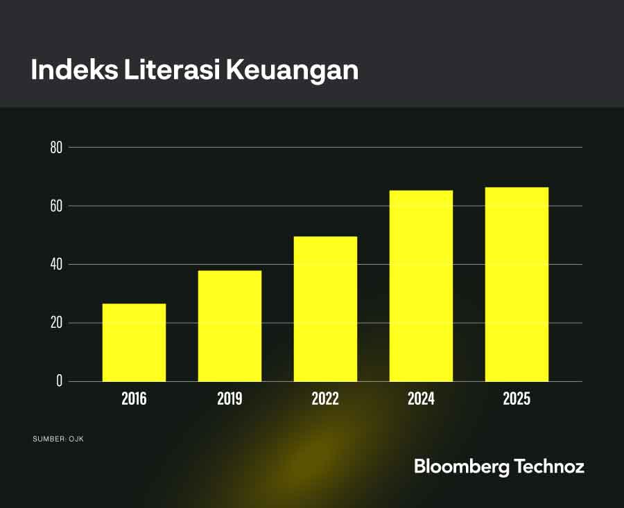 Pada 2025, Indeks Literasi Keuangan tercatat 66,46%. Naik dibandingkan 2024 yang sebesar 65,43%.