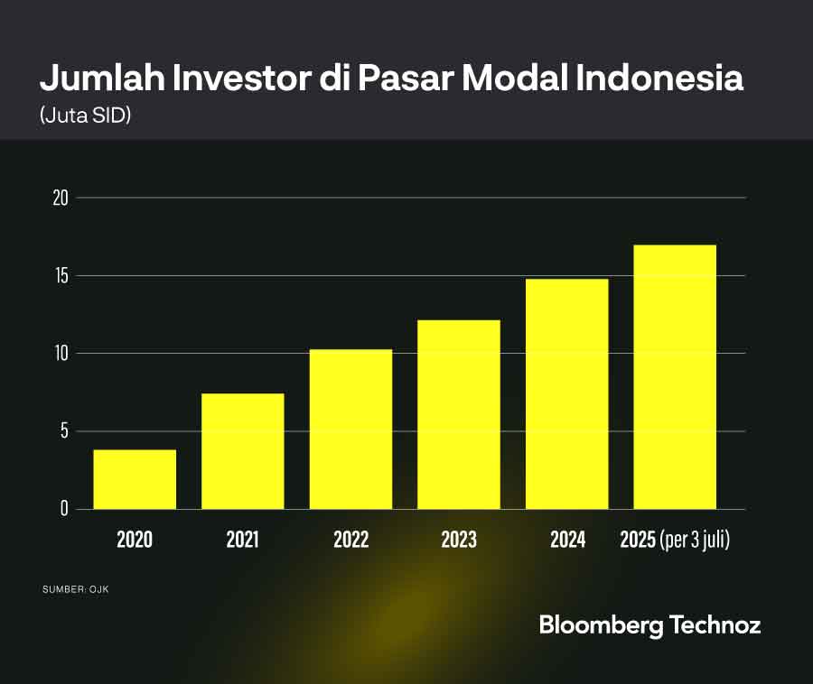 Masyarakat yang makin melek investasi membuat arus modal ke pasar saham Indonesia terus bertambah. Bursa Efek Indonesia (BEI) mencatat jumlah investor saham tercatat lebih dari 17 juta per awal 3 Juli lalu. Ini menjadi rekor tertinggi sepanjang masa.