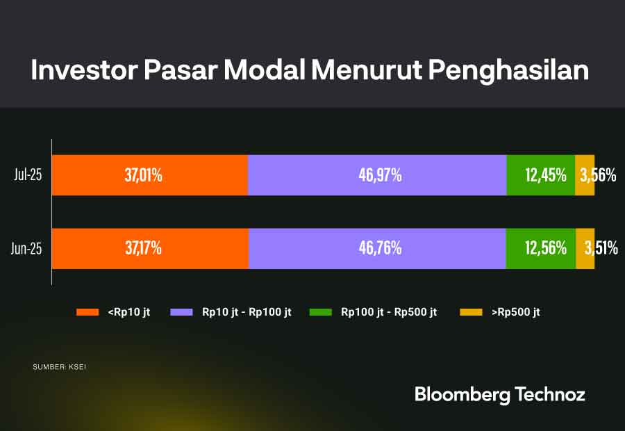 Dari sisi penghasilan, mereka yang berpendapatan kurang dari Rp 10 juta per bulan juga makin sadar pentingnya berinvestasi. Bahkan kelompok ini menjadi investor ritel dengan porsi terbesar.