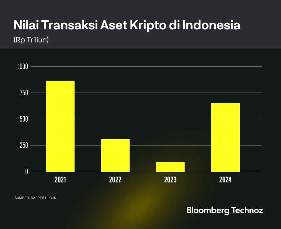 Mengikuti perkembangan zaman, transaksi aset kripto juga makin mendapat tempat di Bumi Nusantara. Otoritas Jasa Keuangan (OJK) mencatat total transaksi kripto di Indonesia mencapai Rp 650,61 triliun pada 2024. Meroket 335,91% dibandingkan tahun sebelumnya.